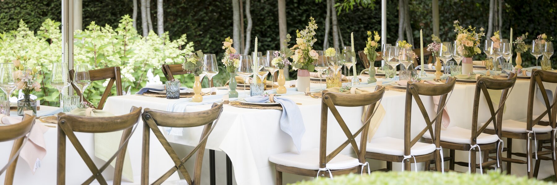 We ontwikkelen een stylingplan op maat, gebaseerd op jullie kleuren, voorkeuren en thema. Van tafeldecoratie, bloemen en sfeerlicht tot een volledige thematische transformatie van jullie tuin, huis of feestlocatie: elk detail wordt met zorg uitgewerkt.