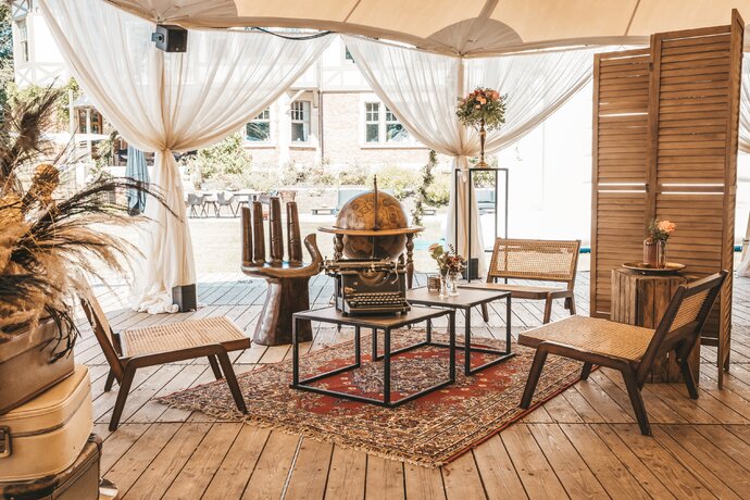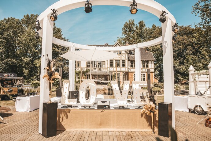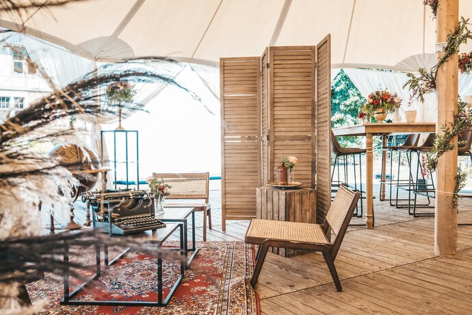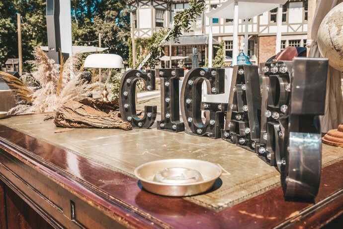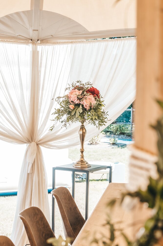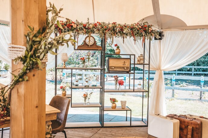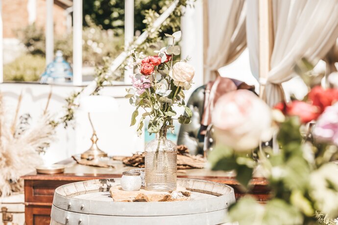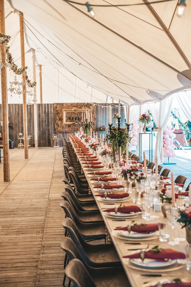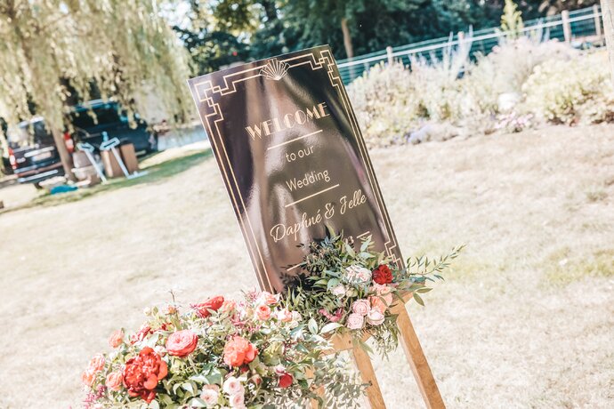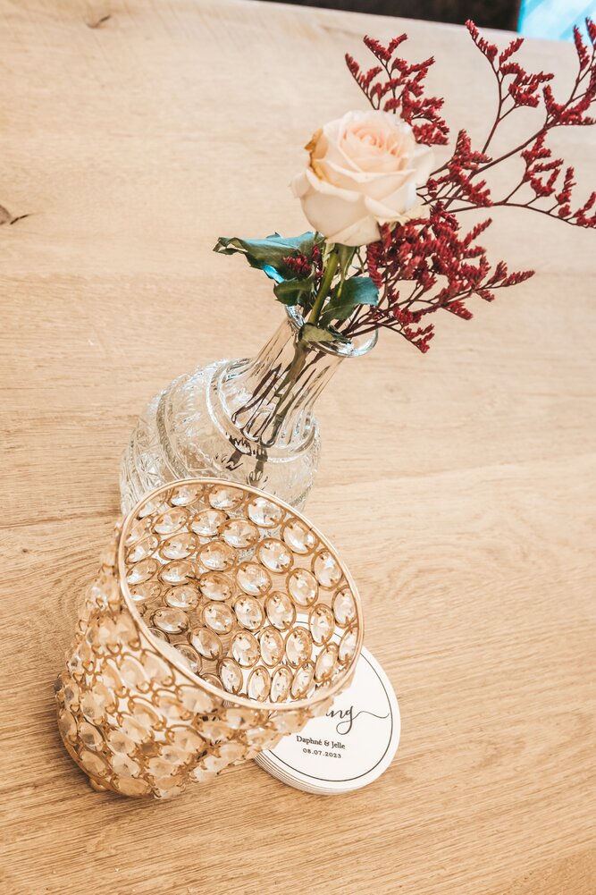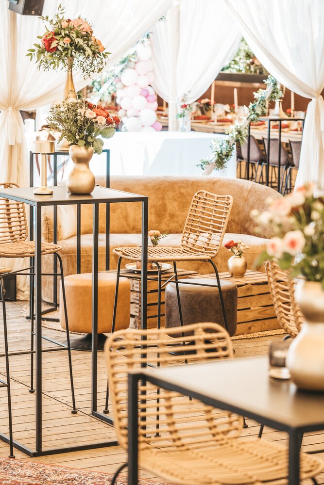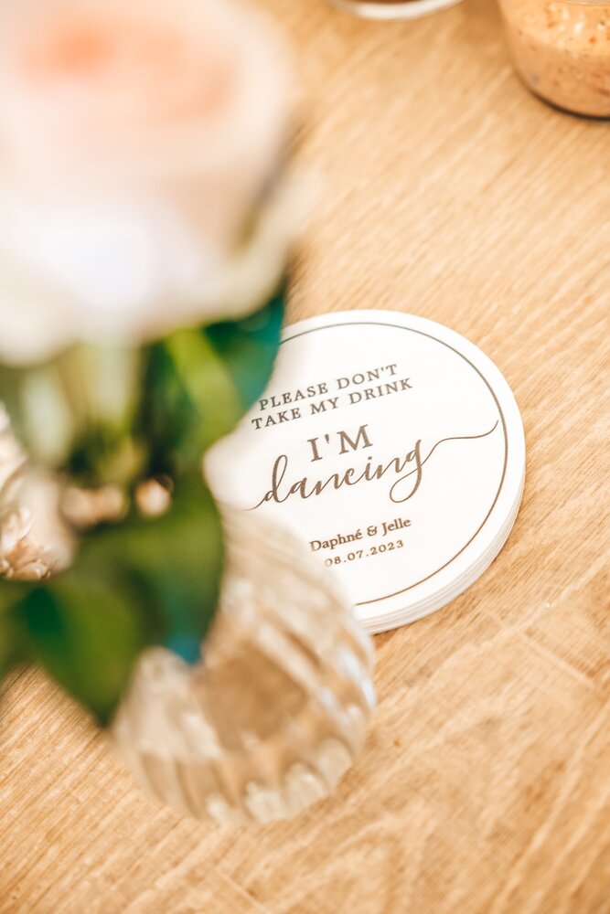 Just Party stond in voor de organisatie, styling en coördinatie, zodat het koppel en hun gasten zorgeloos konden genieten van een helemaal op maat gemaakt, uniek trouwfeest.