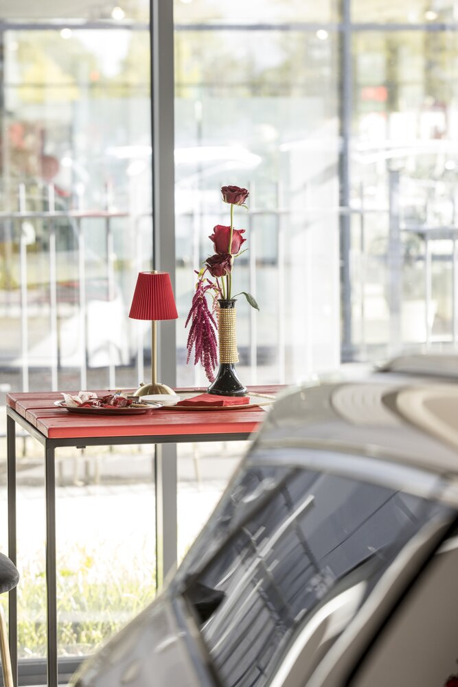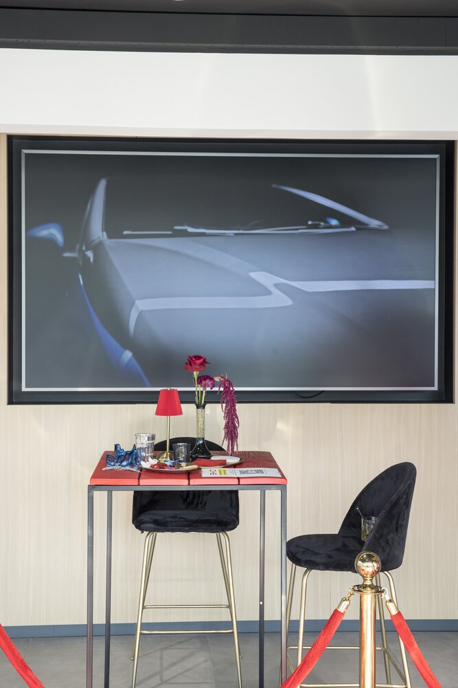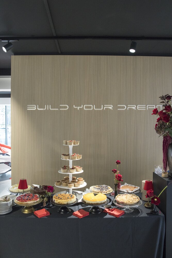 Omdat bezoekers die dag ook proefritten konden maken, werd gekozen voor een stijlvolle bar met non-alcoholische dranken en een aanbod van lekkere hapjes en kleine gerechtjes, zodat iedereen in alle comfort kon genieten.