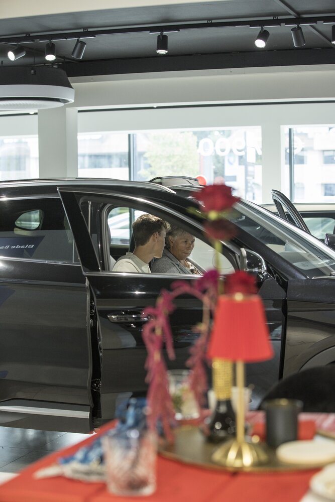 De showroom werd sfeervol aangekleed met custom decoratie en branding, aangepast aan de identiteit van het merk en het model in launch. Gasten werden professioneel ontvangen aan het onthaal, terwijl verschillende vormen van entertainment zorgden voor beleving en dynamiek tijdens het event.